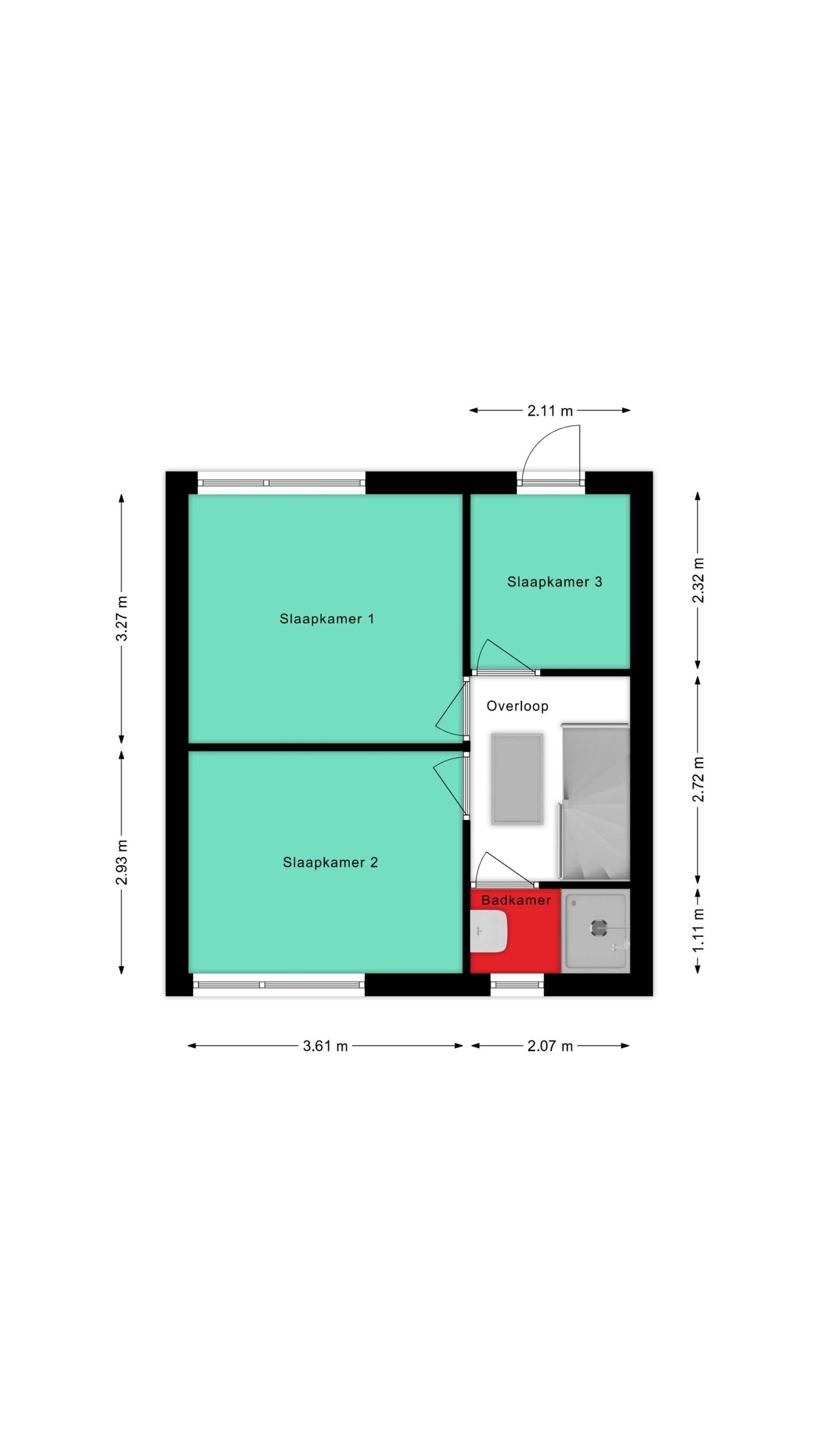 De eerste verdieping beschikt over drie slaapkamers, waarvan twee ruime en één kleinere kamer. Alle kamers zijn voorzien van een laminaatvloer.
