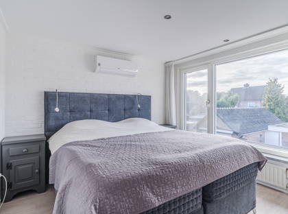 De hoofdslaapkamer aan de achterzijde is uitgerust met een airco-installatie, ideaal voor warme zomerdagen.