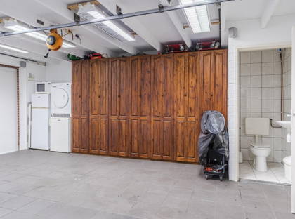 Een absoluut pluspunt van deze woning is de zeer ruime garage (circa 47 m²), ideaal voor hobby’s, opslag of als werkruimte. De garage is voorzien van rolluiken, verwarming, elektra, toilet, witgoedaansluiting en een extra ketel.