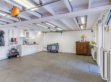 + Garage met verwarming, toilet, witgoed, isolatie en nieuw dak (2023)