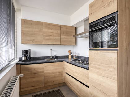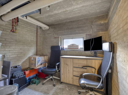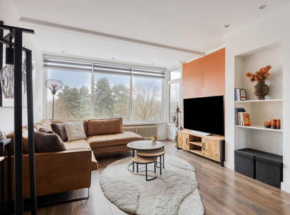 De woonkamer is ruim opgezet en valt meteen op door het vele daglicht. Dankzij de grote ramen ontstaat een frisse, open sfeer en heb je een vrij uitzicht over de omgeving. Met de nette laminaatvloer en strak gestucte wanden vormt deze ruimte een perfecte basis voor elke woonstijl. Wie behoefte heeft aan een extra kamer, kan hier eenvoudig een tweede slaapkamer creëren.