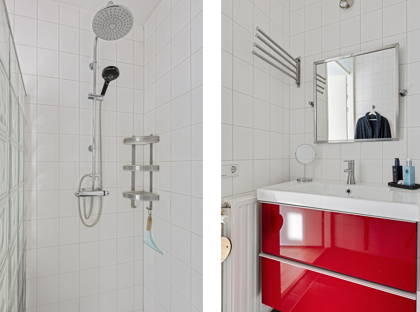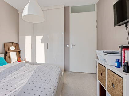 De slaapkamer is ruim van opzet, eveneens voorzien van vloerbedekking en een inbouwkast. De badkamer beschikt over een inloopdouche en een wastafel.