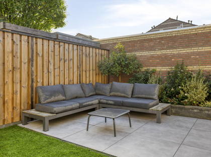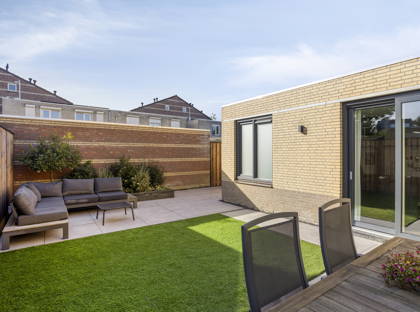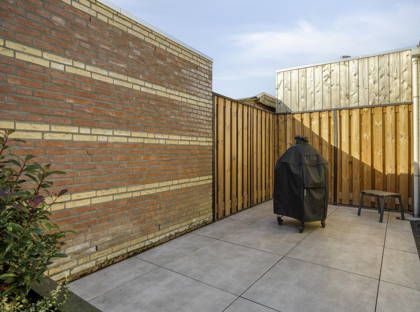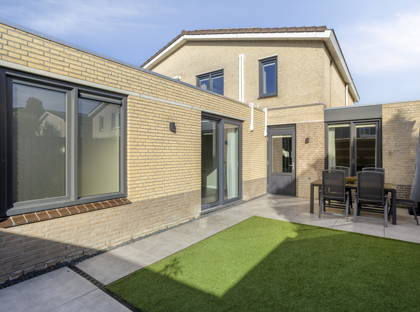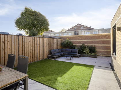 De achtertuin is gelegen op het zonnige zuiden en is fraai aangelegd met tegels en kunstgras. Hierdoor is de tuin onderhoudsvriendelijk. Hier kunt u de hele dag genieten van de zon en heerlijk ontspannen in een nette en praktische buitenruimte.