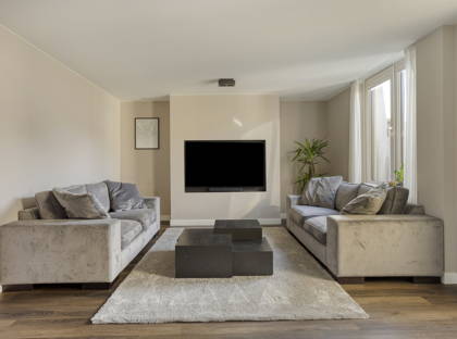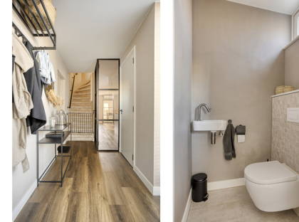 Via de verzorgde entree komt u in de hal met een nieuwe meterkast, pvc vloer en modern toilet. Vervolgens stapt u de lichte woonkamer binnen. Hier geniet u van een strakke afwerking, een pvc vloer, een stijlvol tv-meubel met beugel en een airco die zorgt voor een aangenaam binnenklimaat.