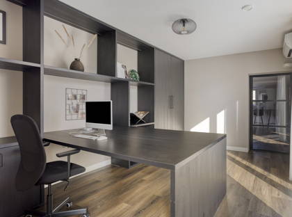 Aangrenzend vindt u een extra kamer die perfect dienst kan doen als hobby of werkkamer. De ruimte is voorzien van een pvc vloer, een op maat gemaakte inbouwkast, airco en vloerverwarming.