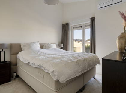 De verdieping met betonnen vloer biedt drie comfortabele slaapkamers, alle slaapkamers zijn uitgerust met een airco. Dankzij de kunststof kozijnen met triple glas en strak stucwerk zijn de kamers direct klaar voor gebruik.