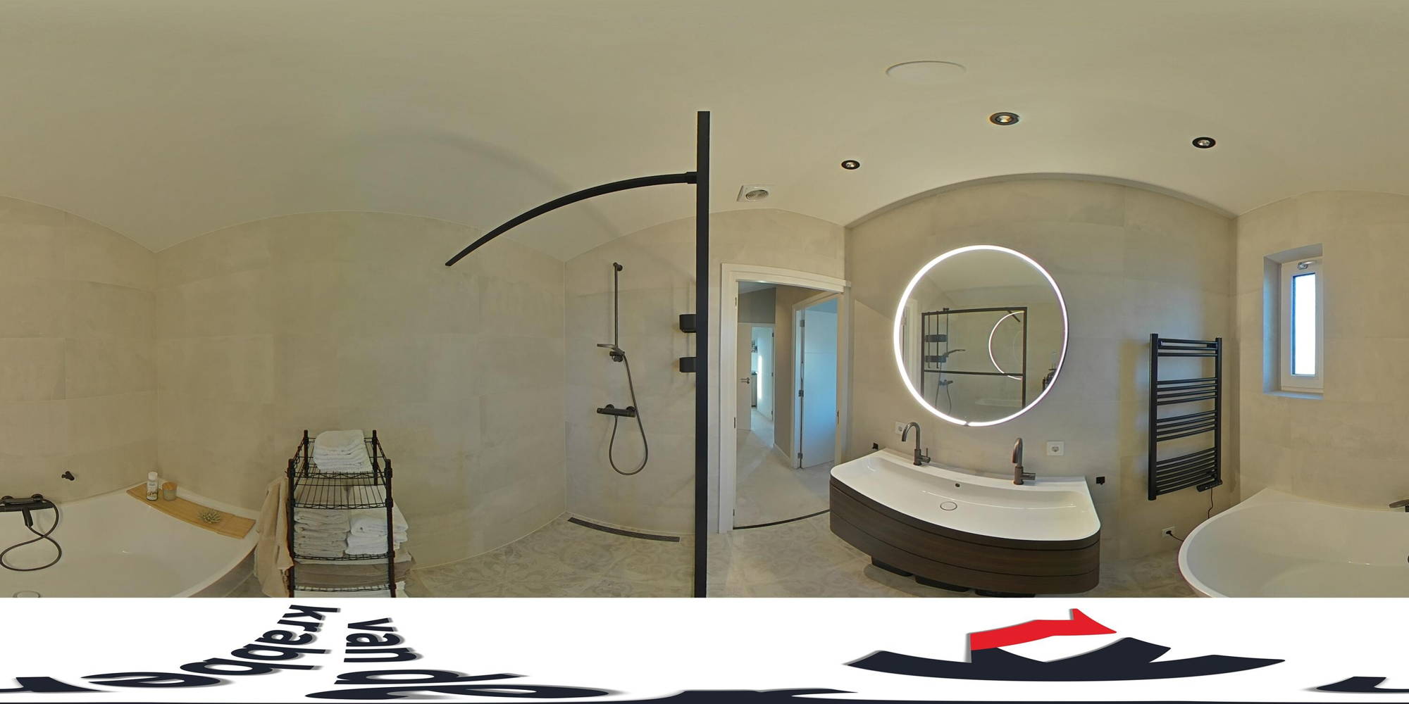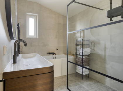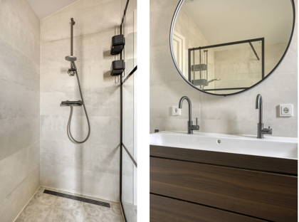 De moderne badkamer beschikt over een inloopdouche, ligbad, dubbele wastafel en een raam dat zorgt voor veel daglicht. Voor extra comfort is er een elektrische radiator aanwezig. Daarnaast vindt u op deze verdieping een tweede, recent vernieuwd toilet.