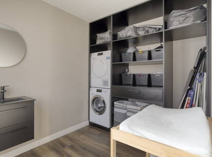 Een praktische wasruimte maakt het plaatje compleet desgewenst in te richten als tweede badkamer.