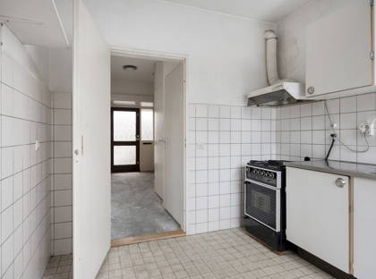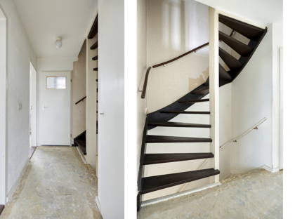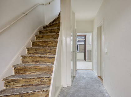 Via de entree met meterkast, toilet en trapopgang bereik je de woonkamer. De lichte woonkamer heeft een laminaatvloer. Onder de trap bevindt zich een handige trapkast voor extra opbergruimte.