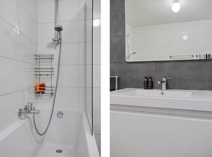De overloop biedt toegang tot drie slaapkamers en de badkamer. De kamers zijn netjes afgewerkt met onder andere stucwerk, spuitplafond en vloerafwerking. De badkamer is geheel betegeld en beschikt over een bad/douchecombinatie, wasmeubel, wc, mechanische ventilatie én aansluiting voor de wasmachine.