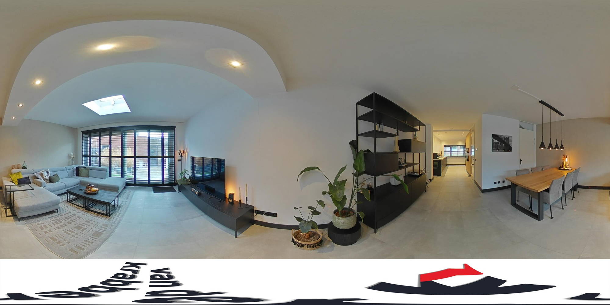 De woonkamer biedt dankzij de uitbouw volop leefruimte en licht. De grote schuifpui en de lichtkoepel maken de living extra aangenaam en zorgen voor een fijne verbinding met de tuin. De trapkast biedt praktische bergruimte.