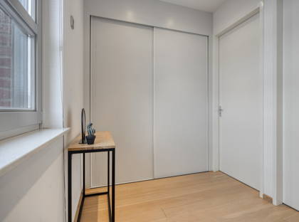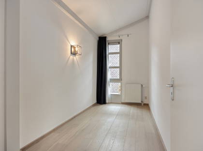 Op de eerste verdieping treft u twee grote slaapkamers, beide keurig afgewerkt met een lamelparketvloer en strak stucwerk. De slaapkamer aan de achterzijde is voorzien van een elektrisch rolluik.