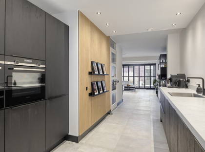 + Luxe keuken met o.a. Bora-inductie, oven, combi-oven, warmhoudlade, koelkast en vaatwasser