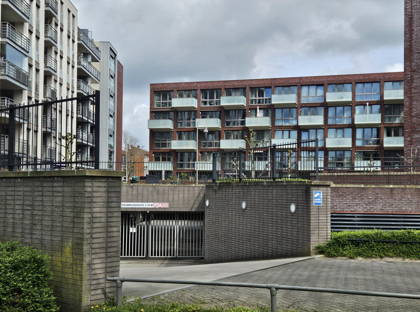 Het appartement heeft een eigen parkeerplaats in de overdekte parkeergarage (gelegen onder de daktuin) alsmede een privé berging en een gezamenlijke fietsenstalling.