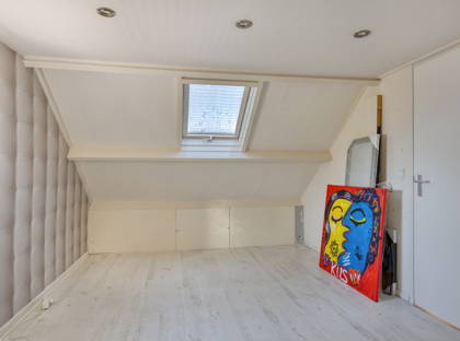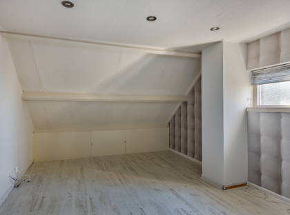 De tweede verdieping beschikt over een betonnen vloer en is ingericht met een derde slaapkamer. Deze ruimte is afgewerkt met een laminaatvloer en biedt een fijne extra kamer voor bijvoorbeeld een slaapkamer, werkplek of hobbyruimte.