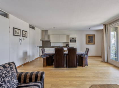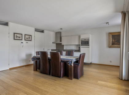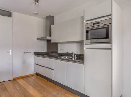 + De open keuken is voorzien van een modern keukenblok met keramische kookplaat, afzuigkap, combi-magnetron, vaatwasser en een ruime koelkast.