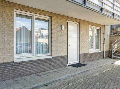 Dit gelijkvloerse appartement ligt op de hoek van twee straten en beschikt over een eigen tuin én parkeerplaats op eigen terrein. Je hebt toegang via de centrale entree of direct via je eigen voordeur aan de achterzijde van het complex.