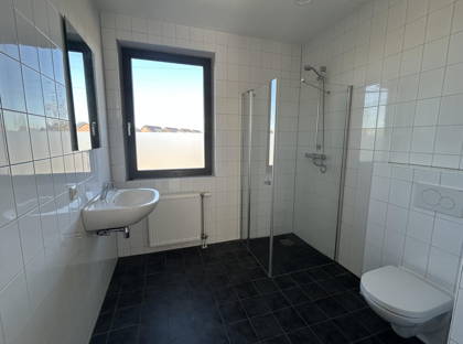 De overloop verbindt de drie ruime slaapkamers met de badkamer die compleet is uitgevoerd met douche, wastafel en tweede toilet.