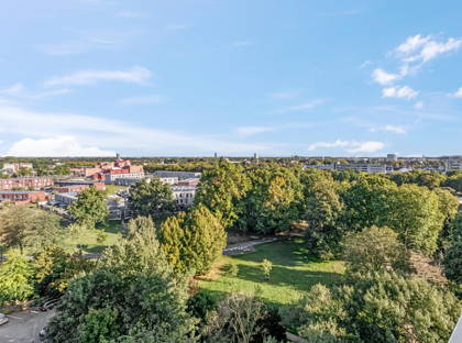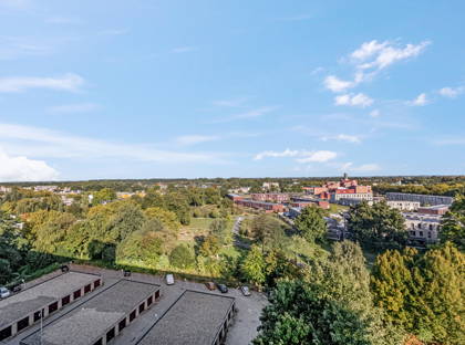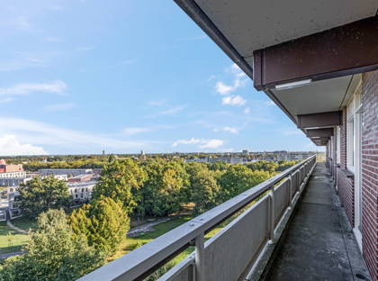 Aan de voorkant kijk je vrij uit over een brede laan. Aan de achterzijde ligt een groot park. Het geeft het hele complex een bijzondere ligging. Helemaal bijzonder is dat dit appartement op de bovenste (10e) verdieping ligt, waardoor je optimaal profiteert van het vrije uitzicht en de rust. En dat terwijl het overdekte winkelcentrum De Ruwert vrijwel om de hoek ligt. De dagelijkse boodschappen heb je dus in een mum van tijd gedaan.