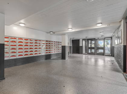 + Met intercom beveiligde toegang tot riante centrale entree. Vervolgens met lift of trap naar verdieping en via galerij naar voordeur. Vanaf de galerij kijk je uit over een prachtig groot park aan de achterzijde van het complex.