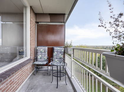 Het balkon op het zuiden is een heerlijke plek om van de zon en het weidse uitzicht over Oss en omgeving.
