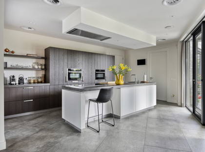 + De open keuken met kookeiland is luxe uitgevoerd en voorzien van hoogwaardige inbouwapparatuur, waaronder een inductiekookplaat, afzuigkap, Quooker kokend waterkraan, oven, stoomoven, koelkast, vaatwasser en bar om aan te zitten. Vanuit de keuken loop je direct naar het overdekte terras, waar je heerlijk beschut kunt zitten.