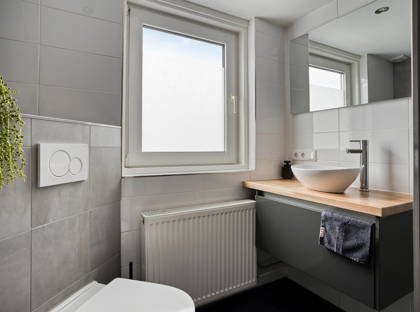 Op de verdieping vind je via de trap omhoog twee slaapkamers en een moderne badkamer. Deze badkamer is in 2019 vernieuwd, wat zorgt voor een frisse en eigentijdse uitstraling.