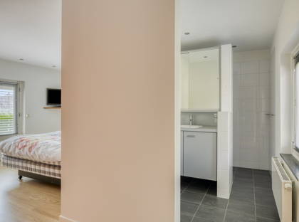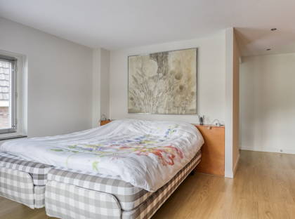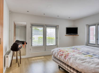 De royale hoofdslaapkamer is uitgevoerd met en-suitebadkamer, ramen aan twee zijden, spotverlichting en twee vaste kasten. In een van de andere kamers is ook een vaste kast. Op de gehele verdieping ligt een laminaatvloer.