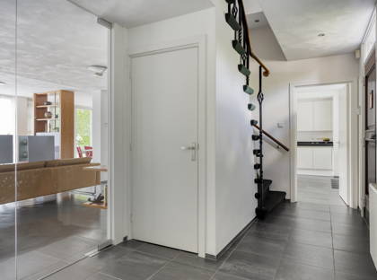 Met eenvoudige ingrepen is er echter ook een andere functie aan het kantoorgedeelte te geven. Het doorbreken van de scheidingswanden maakt bijvoorbeeld een riante gezinswoning, maar ook dubbele bewoning of een combinatie met mantelzorg absoluut mogelijk. De creatieve geest kan hier volop plannen maken. Natuurlijk levert het hoge energielabel - door optimale isolatie en zonnepanelen - hierbij een welkome bijdrage.