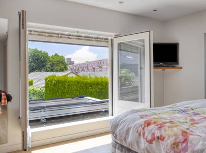 Al helemaal als je hier de zeer diepe tuin bij optelt. Niet alleen springt in het oog dat de tuin zeer fraai is aangelegd en royale afmetingen heeft. Ook de verrassende privacy en vrijheid vallen op. Midden in de stad zul je dit niet snel aantreffen. Het leefgevoel wordt hier nog vergroot door de aanwezigheid van een eigen zwembad en de multifunctionele ruimte in de voormalige garage.