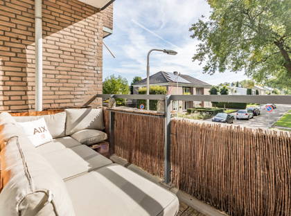 Het balkon ligt gunstig op het zuiden, waardoor je de hele dag door kunt genieten van de zon. Het vrije uitzicht op de groene omgeving maakt dit tot een heerlijke buitenplek waar je echt even tot rust komt.