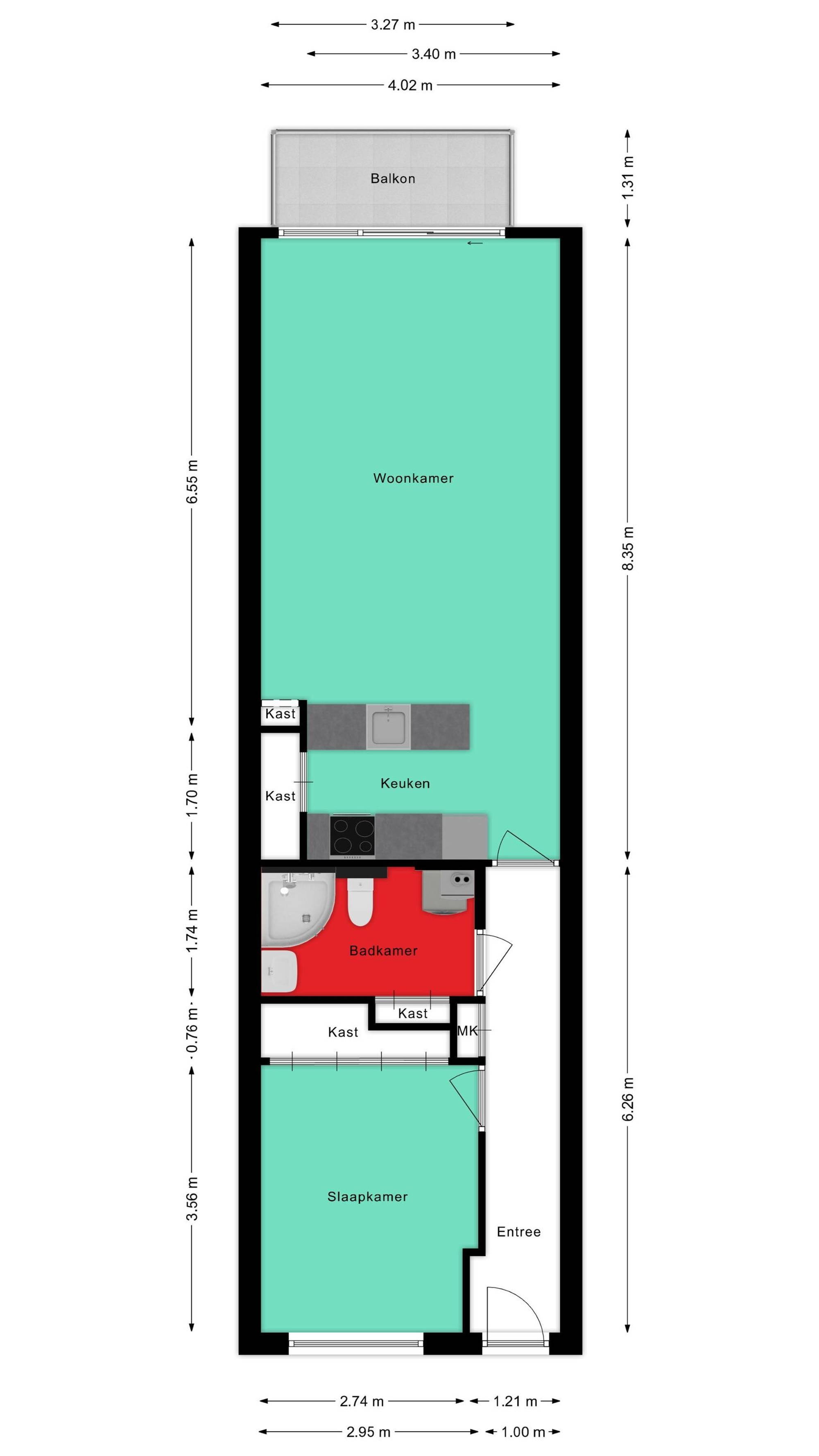 De woning beschikt verder over een royale slaapkamer, met voldoende ruimte voor een groot bed en voorzien van een praktische inbouwkast. De badkamer is uitgerust met een douche, toilet, wastafel en wastafelmeubel, inbouwkast en biedt een fijne basis. De elektrische boiler (2017) zorgt voor warm water.