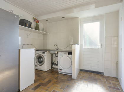 + Aansluitend bevindt zich de praktische bijkeuken met de witgoedaansluitingen en een toiletruimte met toilet en fonteintje.