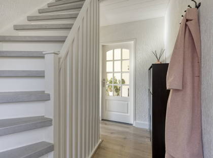 + De entree geeft toegang tot een hal met de meterkast (13 groepen) en praktische trappenkast.