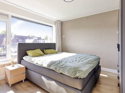 + De slaapkamers zijn verzorgd afgewerkt met een laminaatvloer en kunststof draaikiepkozijnen. Twee kamers beschikken over rolluiken en de hoofdslaapkamer is voorzien van airconditioning.