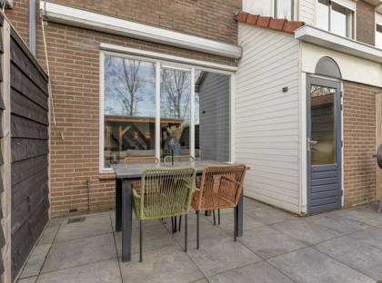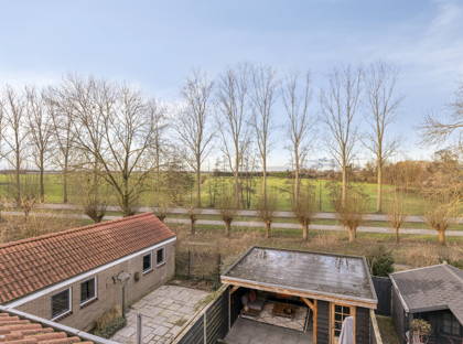 Buiten geniet je van een zonnige en verrassend vrije ligging. De achtertuin op het westen is een heerlijke plek om tot in de avond van de zon te genieten. Het terras biedt volop ruimte voor een loungeset of eettafel en de overkapping met stroomvoorziening maakt het buitenleven extra comfortabel. Door de ligging aan de buitenrand van Oss kijk je aan de achterzijde heerlijk vrij weg. Daarnaast is er een houten berging aanwezig én een praktische achterom.