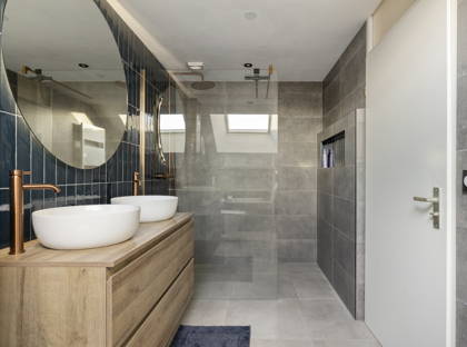 Op de eerste verdieping tref je drie slaapkamers aan, voorzien van een nette laminaatvloer en afgewerkt met spuitwerk. De aanwezige rolluiken maken het geheel extra comfortabel. De echte blikvanger op deze verdieping is de badkamer: deze is in 2023 vergroot en compleet vernieuwd. De badkamer beschikt over een ligbad, inloopdouche, toilet, dubbele wastafel en een dakraam voor fijn daglicht en extra ventilatie.