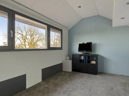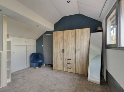 Via een nieuwe vaste trap bereik je de tweede verdieping, waar je verrast wordt door de extra ruimte. Dankzij de dakopbouw, waarbij de nok is verhoogd, is hier een volwaardige vierde slaapkamer ontstaan. Daarnaast is er volop bergruimte aanwezig en vind je hier de kast met opstelling van de Intergas CV-combiketel (2012).