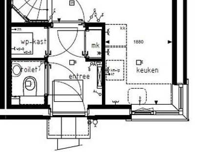 In de hal tref je het toilet, de meterkast, de techniekkast voor de warmtepomp/boiler en de trapopgang naar de verdieping.