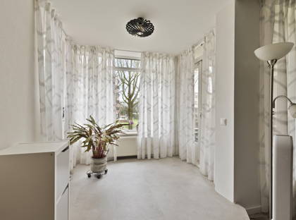 Via de verzorgde entree en de lift loop je naar de voordeur van dit zeer nette appartement. Je stapt binnen in de hal, vanuit waar je naar de woonkamer, twee slaapkamers, badkamer en toilet kunt.