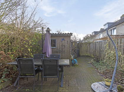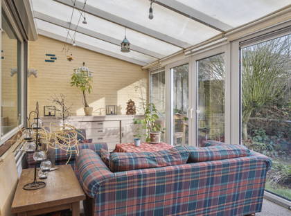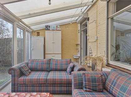 Achter de woning bevindt zich een fijne serre, ideaal om het hele jaar door van het buitenleven te genieten. De zonnige achtertuin ligt op het zuiden, heeft een achterom en beschikt over een stenen berging voor extra opslagruimte.