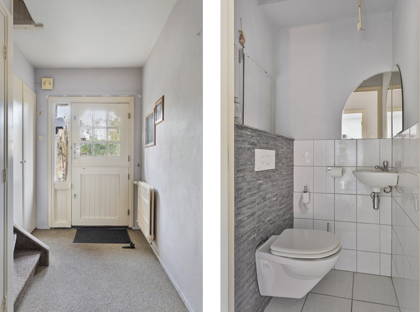 Je betreedt de woning via de hal, waar zich de meterkast, een trapkast en een zwevend toilet bevinden. De ruime doorzonwoonkamer heeft veel lichtinval en is voorzien van een siergrindvloer en strakke stucwanden.
