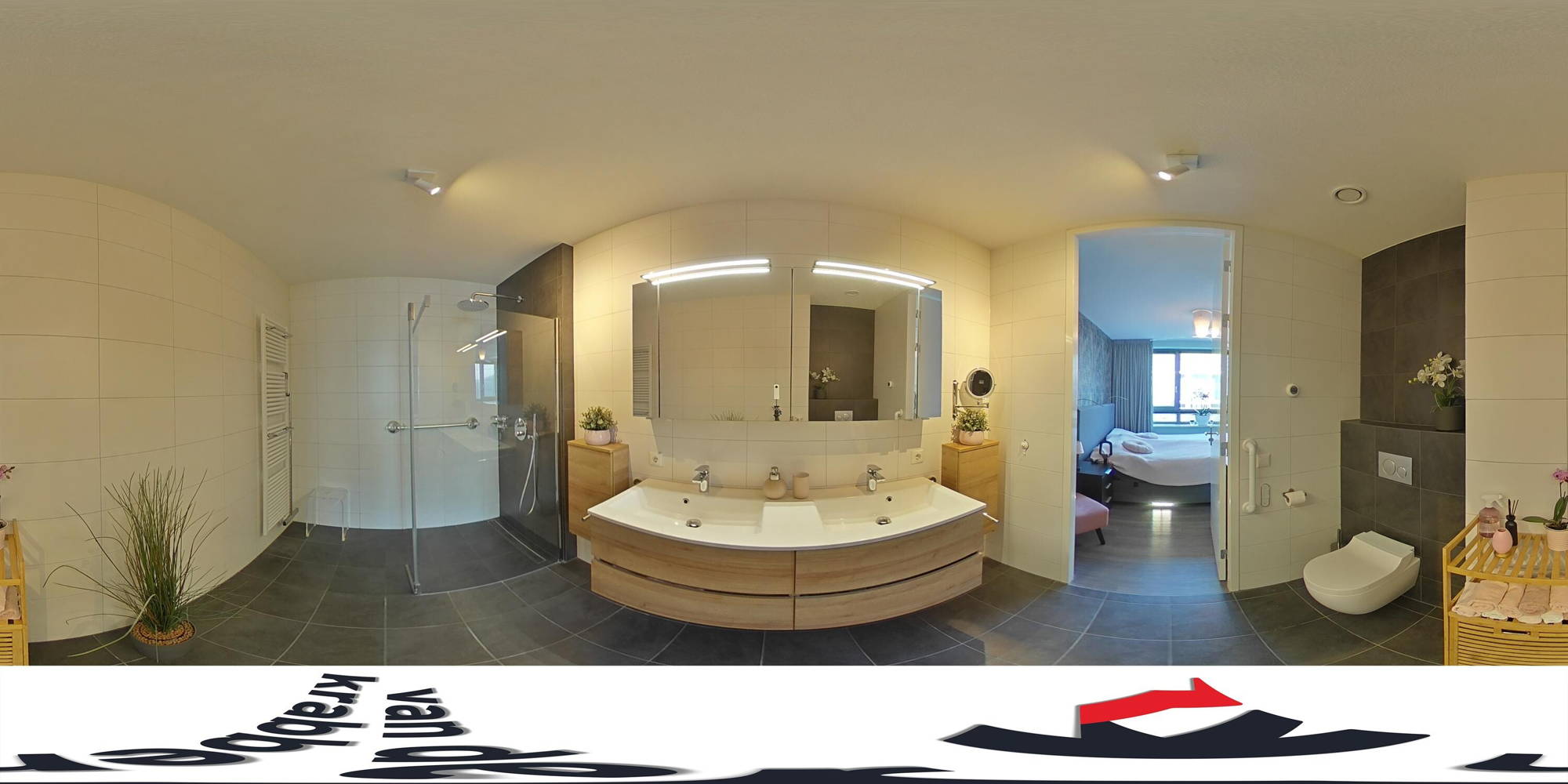 + Naast de badkamer is een separate toiletruimte met wandtoilet en fonteintje.