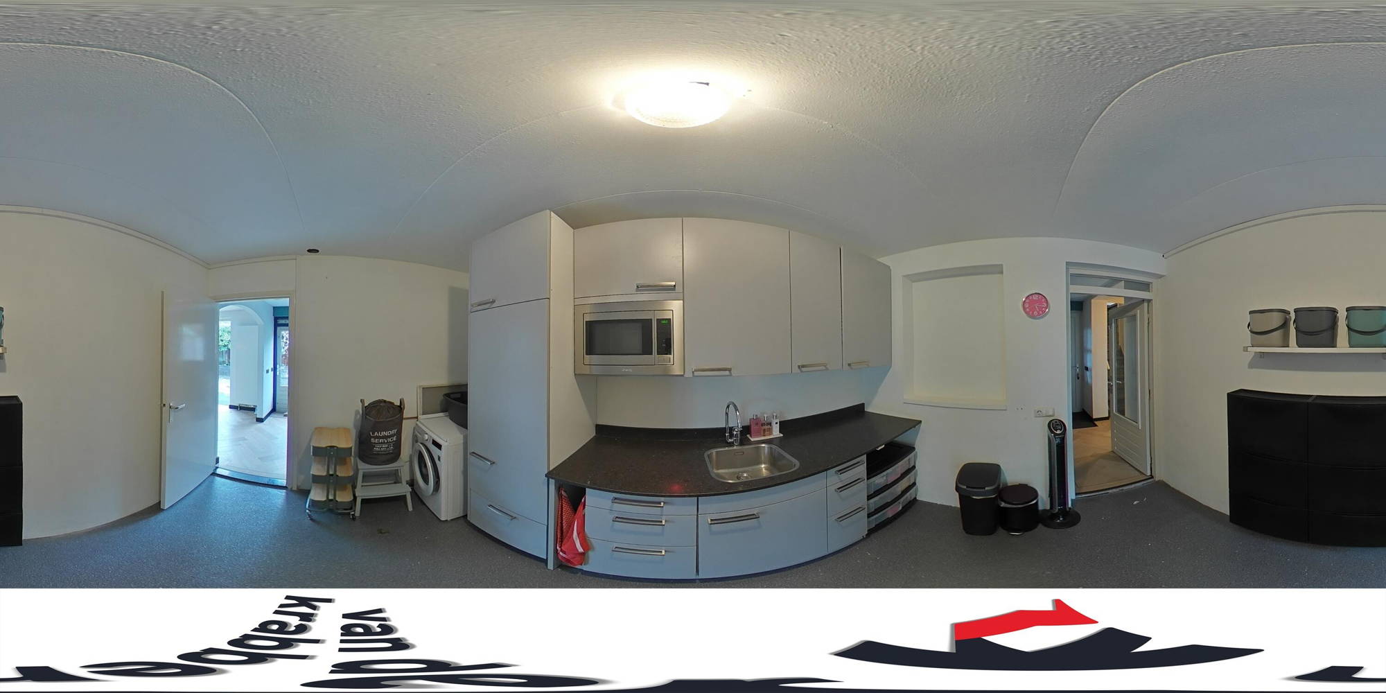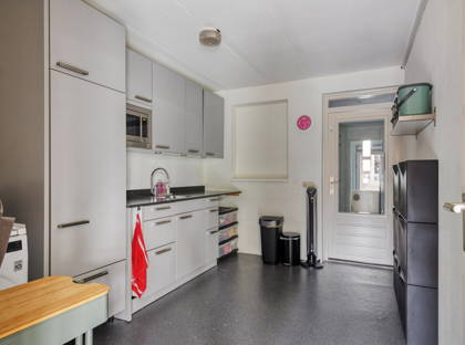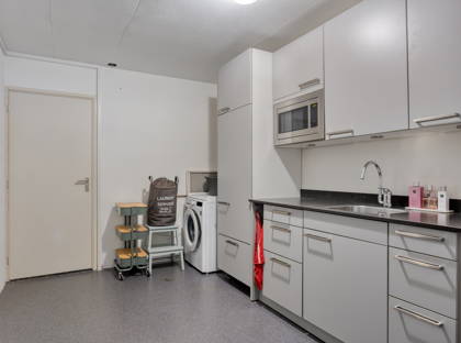 + In de bijkeuken bevinden zich een tweede keukenblok en de witgoedaansluitingen.