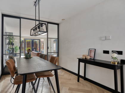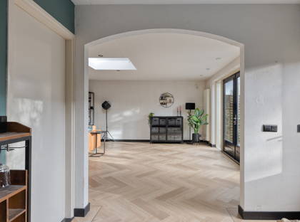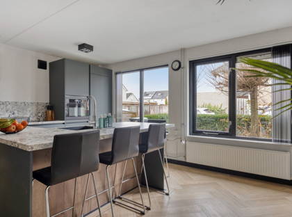 De woning beschikt over drie slaapkamers en een vaste trap naar de tweede verdieping, waar een vierde (slaap)kamer is te realiseren. Op de begane grond zorgt de uitbouw voor een ruime woonkamer met openslaande tuindeuren en volop mogelijkheden voor een thuiswerkplek of speelhoek voor kinderen. Ook praktisch gezien is aan alles gedacht, met onder andere een bijkeuken met witgoedaansluitingen en een berging voor het stallen van fietsen.