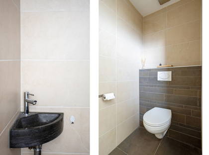 Via de entree kom je in de hal met toiletruimte, voorzien van een toilet en fonteintje.