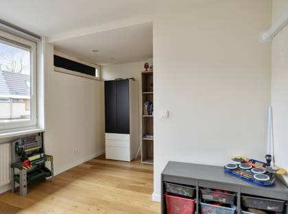 Via een vaste trap bereik je de tweede verdieping. Hier bevinden zich een slaapkamer en een voorzolder met opstelplaats voor de cv-installatie.