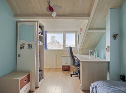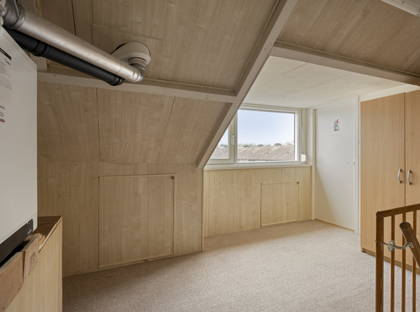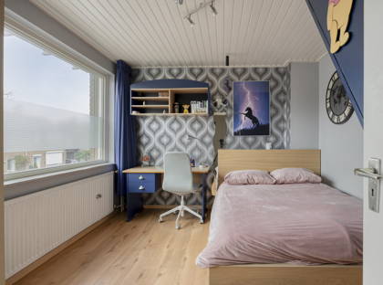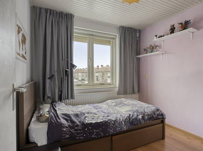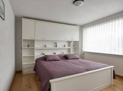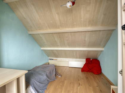 Via een vaste trap loop je vervolgens naar de tweede verdieping. Deze verdieping is voorzien van een dakkapel en hier vind je nog een slaapkamer, die uiteraard ook als hobby- of werkkamer gebruikt kan worden. Zowel op de slaapkamers als op de voorzolder vind je veel bergruimte dankzij de vele ingebouwde kasten.
