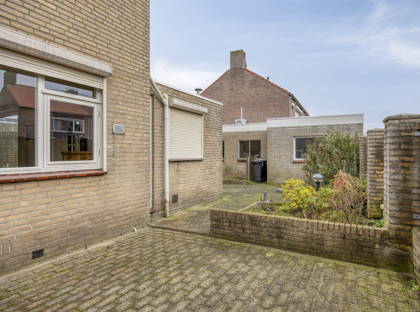 Vanuit de keuken loop je de tuin in. Deze ligt op het zuidwesten en is grotendeels bestraat met groene borders. Vanuit de tuin is de ruime garage bereikbaar, compleet met verwarming en stroom.