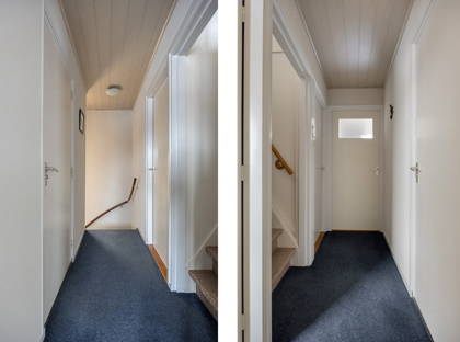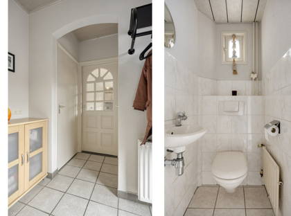 + Je stapt binnen in de entree met toilet en trap naar de eerste verdieping.